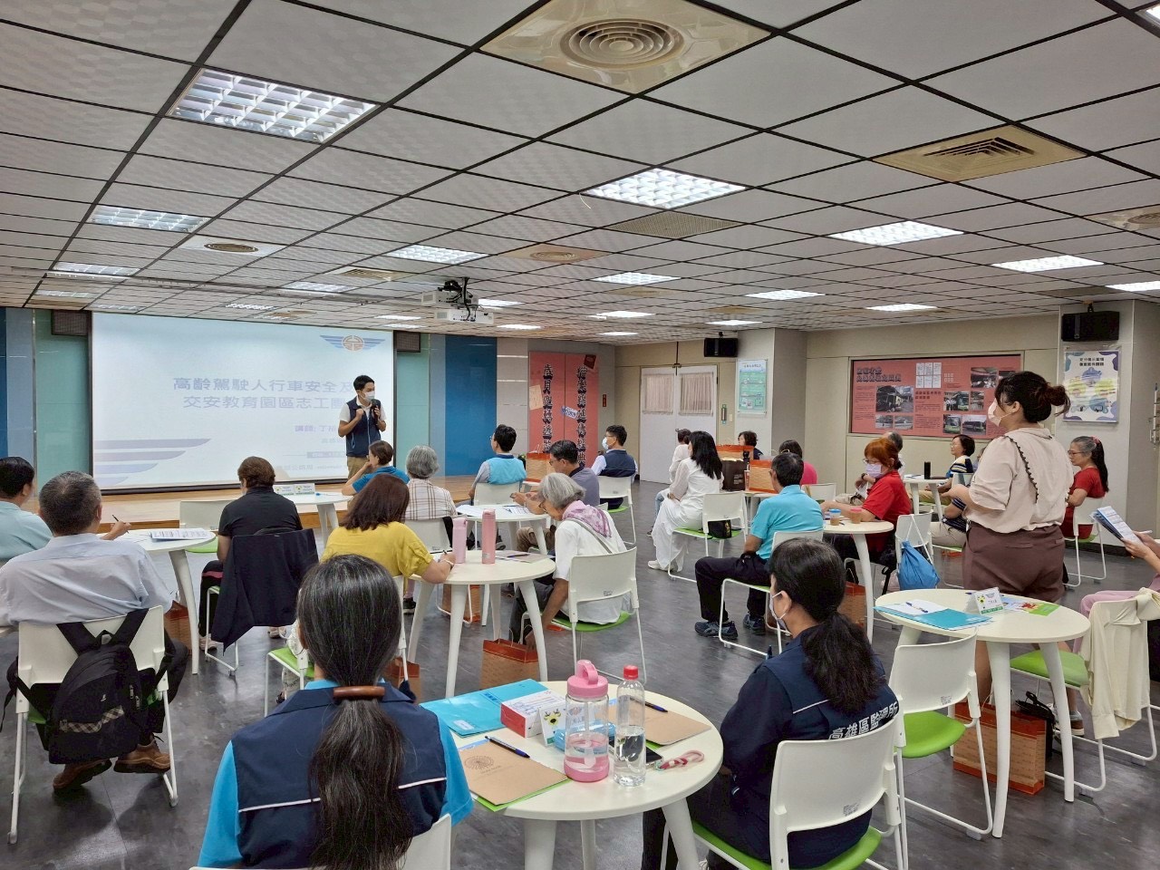 今日課程除了講授高齡者行車安全及案例分析外,還包含了交通安全教育園區志工培訓。馮所長強調,該園區將是南臺灣首座的交通安全教育園區,其中室外體驗區包括乘車安全、無號誌路口、大型車視野死角及內輪差、步行安全、有號誌路口等項目;而室內體驗區包括AR互動、平板遊戲、道路生存戰桌遊等項目,高雄區監理所將依參訪的對象年齡層,安排適合的課程內容。