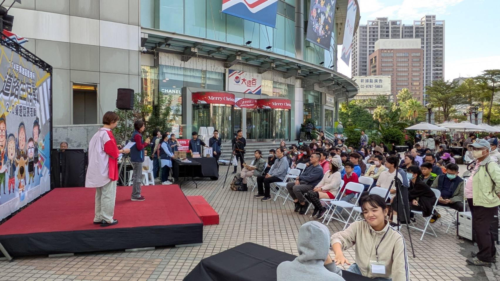 為推廣交通安全觀念,交通部公路局高雄區監理所於12月28日在高雄大遠百前廣場舉辦「道路生存戰-交通安全桌遊競賽」,吸引上百人參賽及圍觀。活動透過互動式桌遊與競賽形式,讓不同年齡層民眾在輕鬆有趣的氛圍中,學習正確的用路觀念,現場氣氛熱絡。