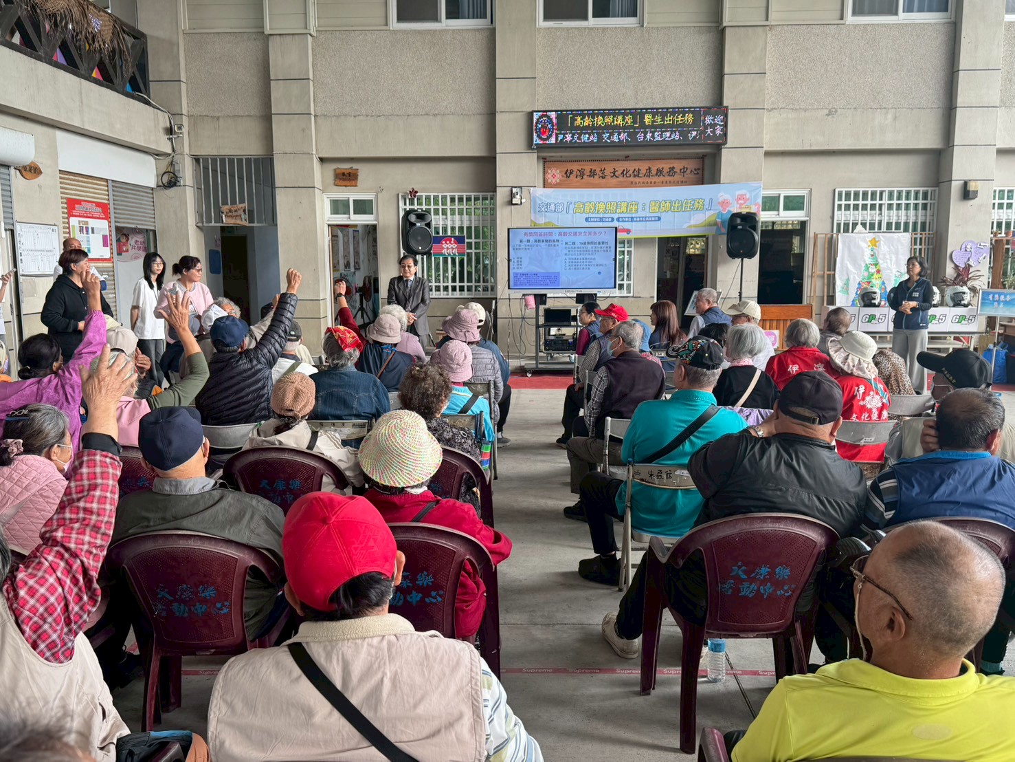 為讓長輩更了解高齡換照政策與安全駕駛觀念,臺東監理站於今(12/29)日下午在臺東市康樂里伊濘部落文化健康服務中心辦理「高齡換照:醫師出任務」宣導講座,邀請凱旋醫院周院長煌智主講「安全與關懷同行 關心高齡駕駛」,透過專業醫療觀點與生活化案例,陪伴長者一起把行車安全顧好。